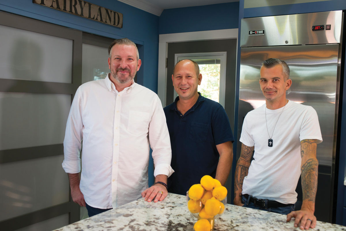 Proud homeowners, Joe Hess (left) and Darryl Coble (center), with kitchen miracle worker, Jared Willwerth of Willwerth Construction.