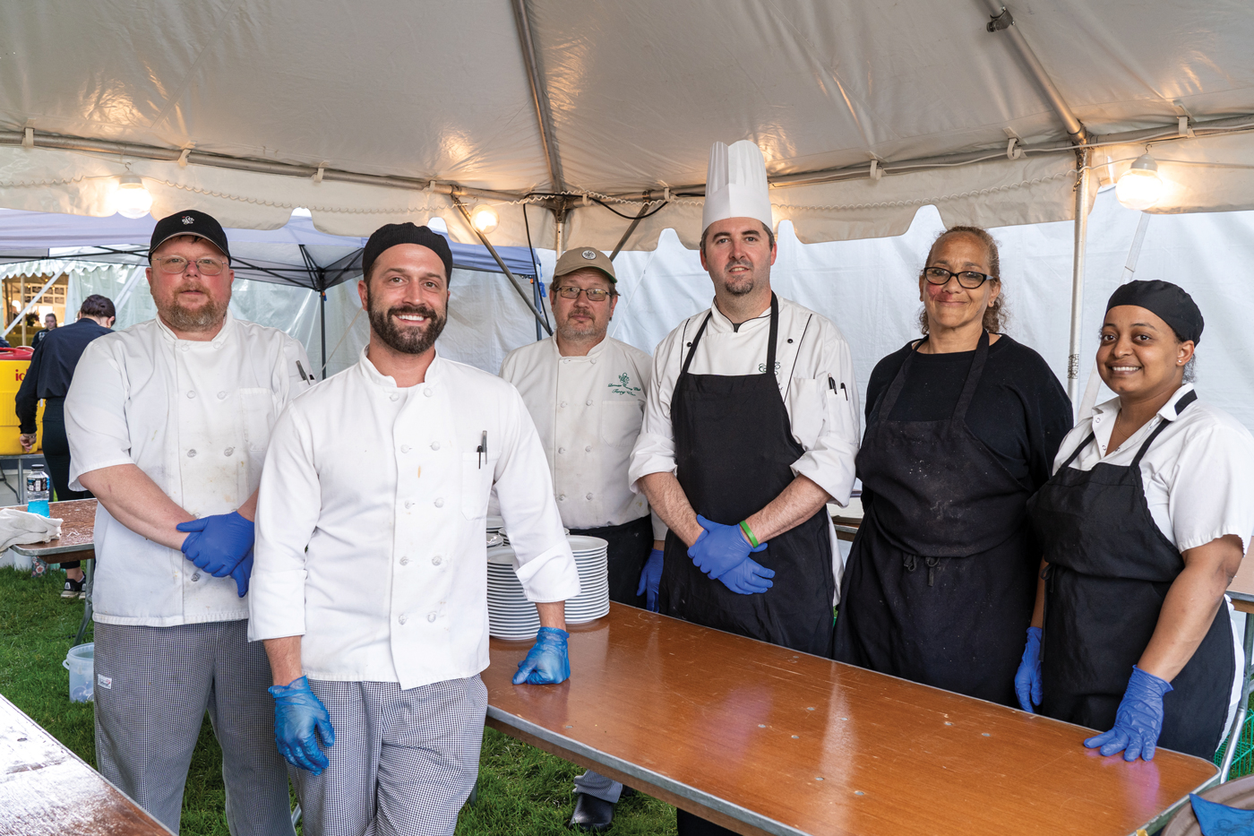 Imagine a tent bigger than most homes: 7,200 square feet of open-air space under a huge white tent. That’s how Water Street Mission solved the dilemma of how to welcome its 340 guests back to the 8th annual Top Chefs of Lancaster County. With a spectacular view of the Lancaster Country Club’s golf fairways and greens, the tent was scenically situated between the clubhouse and tennis courts, creating an enchanting setting on an early June evening.