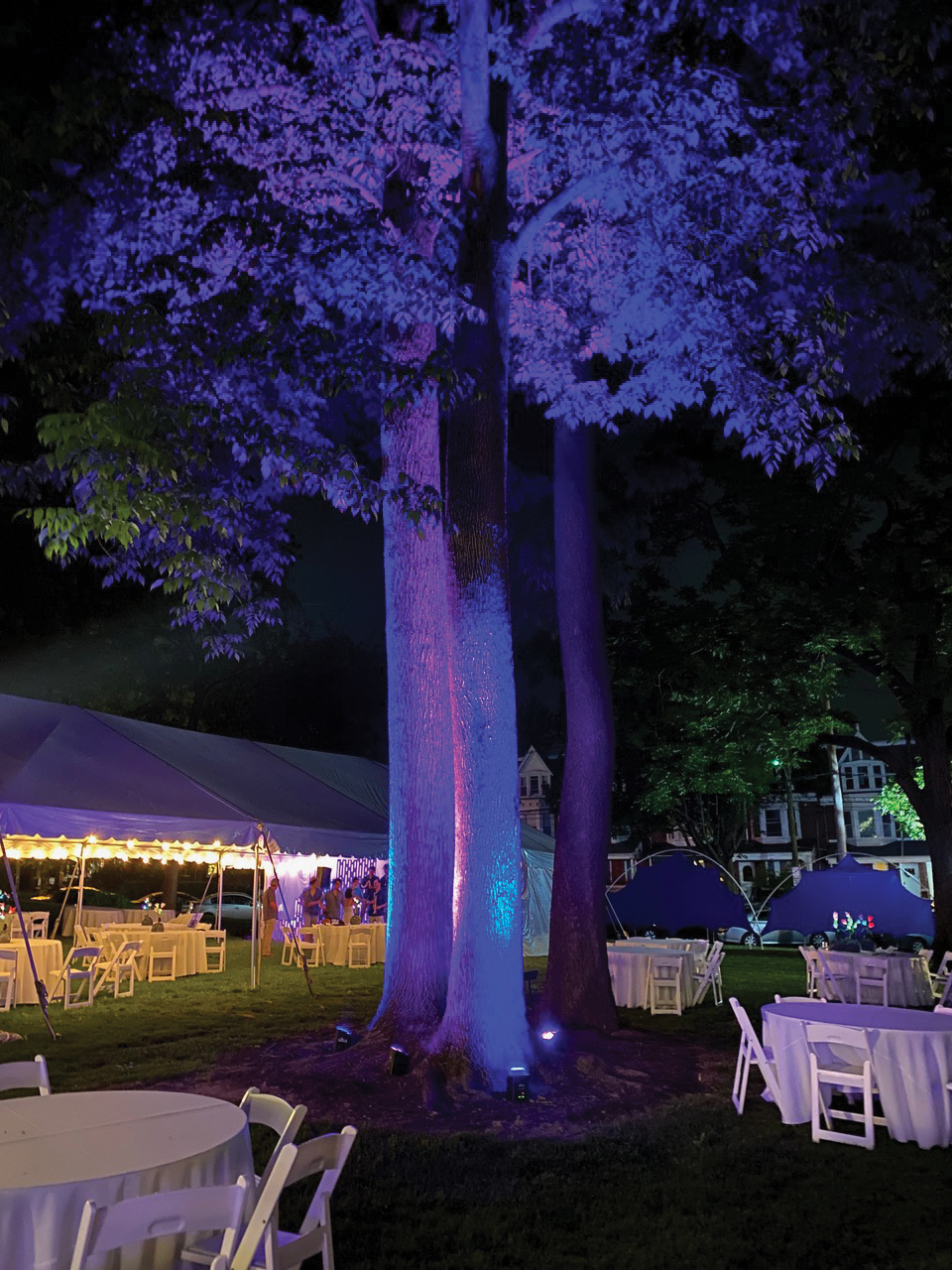 Majestic trees on the campus of Franklin & Marshall were uplit to provide dramatic spotlights on the natural world.