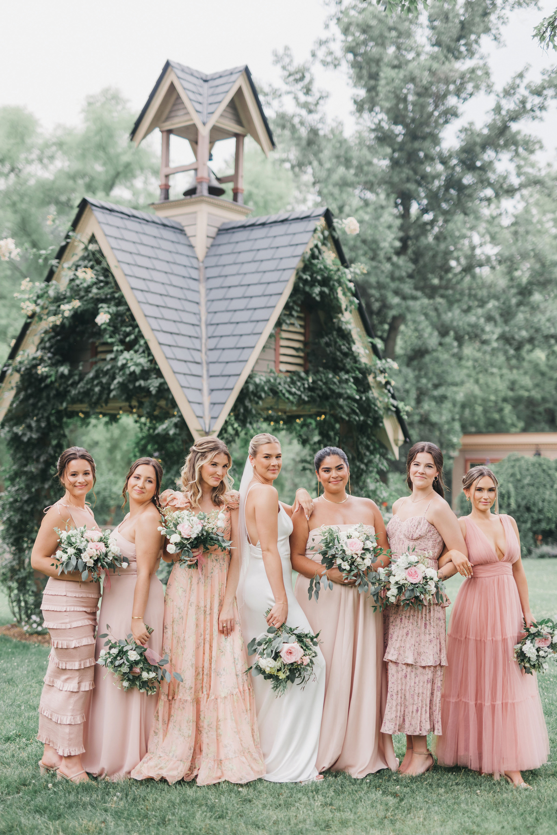 One color, differing styles: an array of pink dresses complemented the color scheme and added to the garden party vibe.
