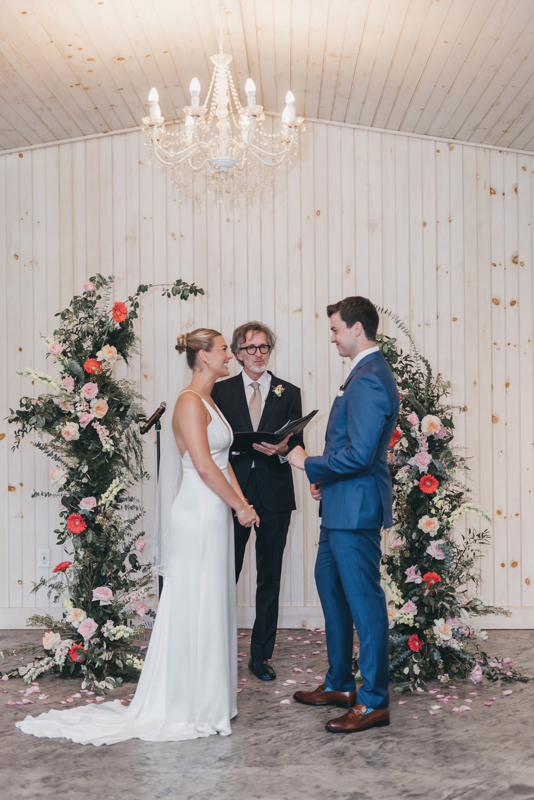 Emily and Alec exchange vows. In this moment, Emily says she felt as if she and Alec were the only people in the room. Alec’s father, Patrick, officiated the ceremony.