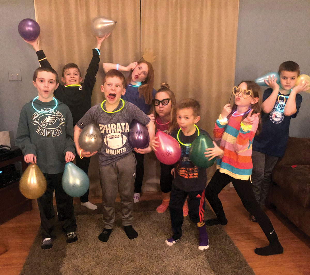 New Year’s Countdown: Kaci Willwerth’s annual New Year’s Eve party is a multigenerational affair. To keep the kids entertained, she provides them with balloons that are popped each hour to reveal a new activity. She also provides a photo booth (with props) that keeps them busy throughout the evening.