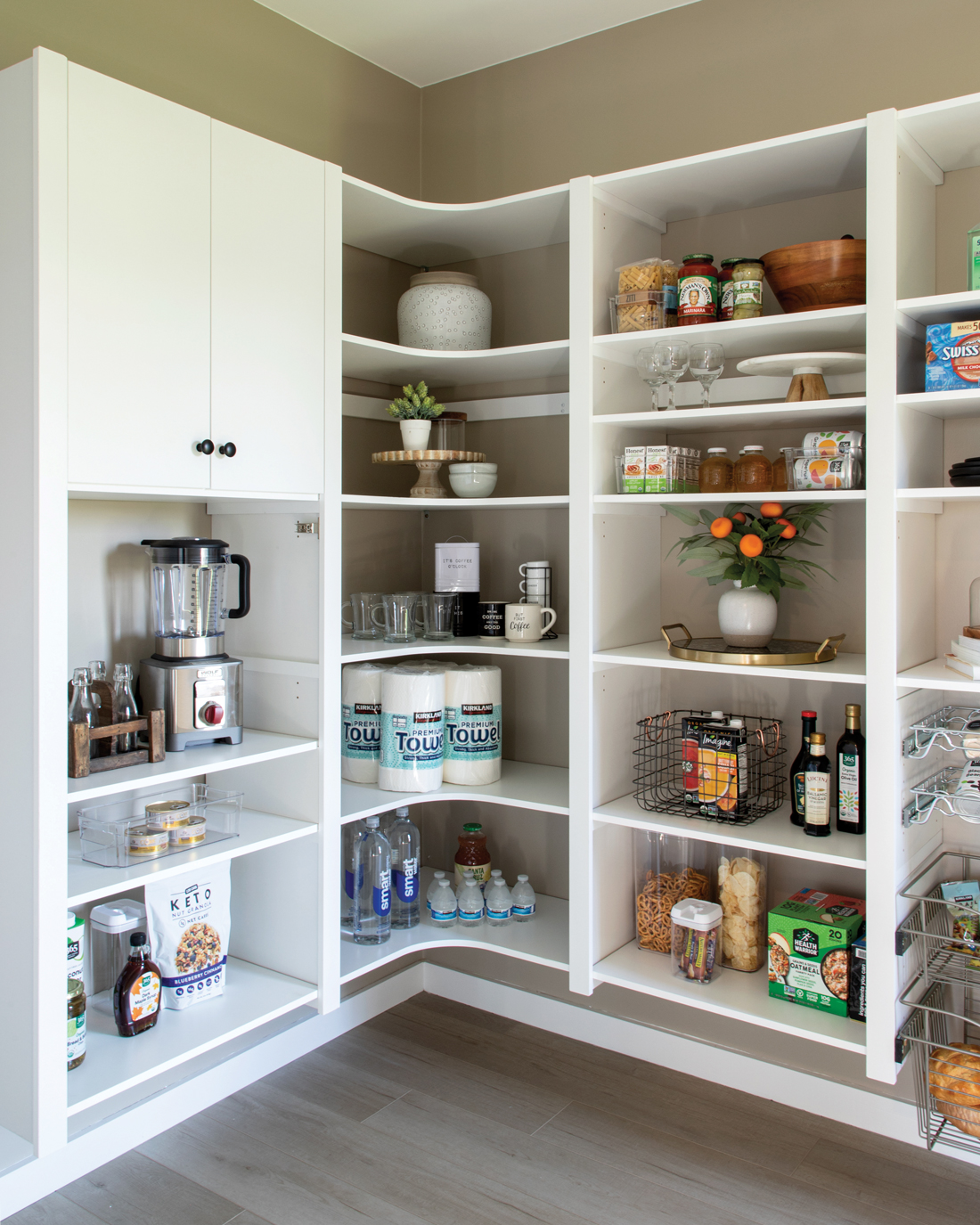 This kitchen pantry utilized the Victory Closets system to provide dedicated spaces for essentials such as paper products, as well as for small appliances and entertaining elements that are not used on a regular basis.