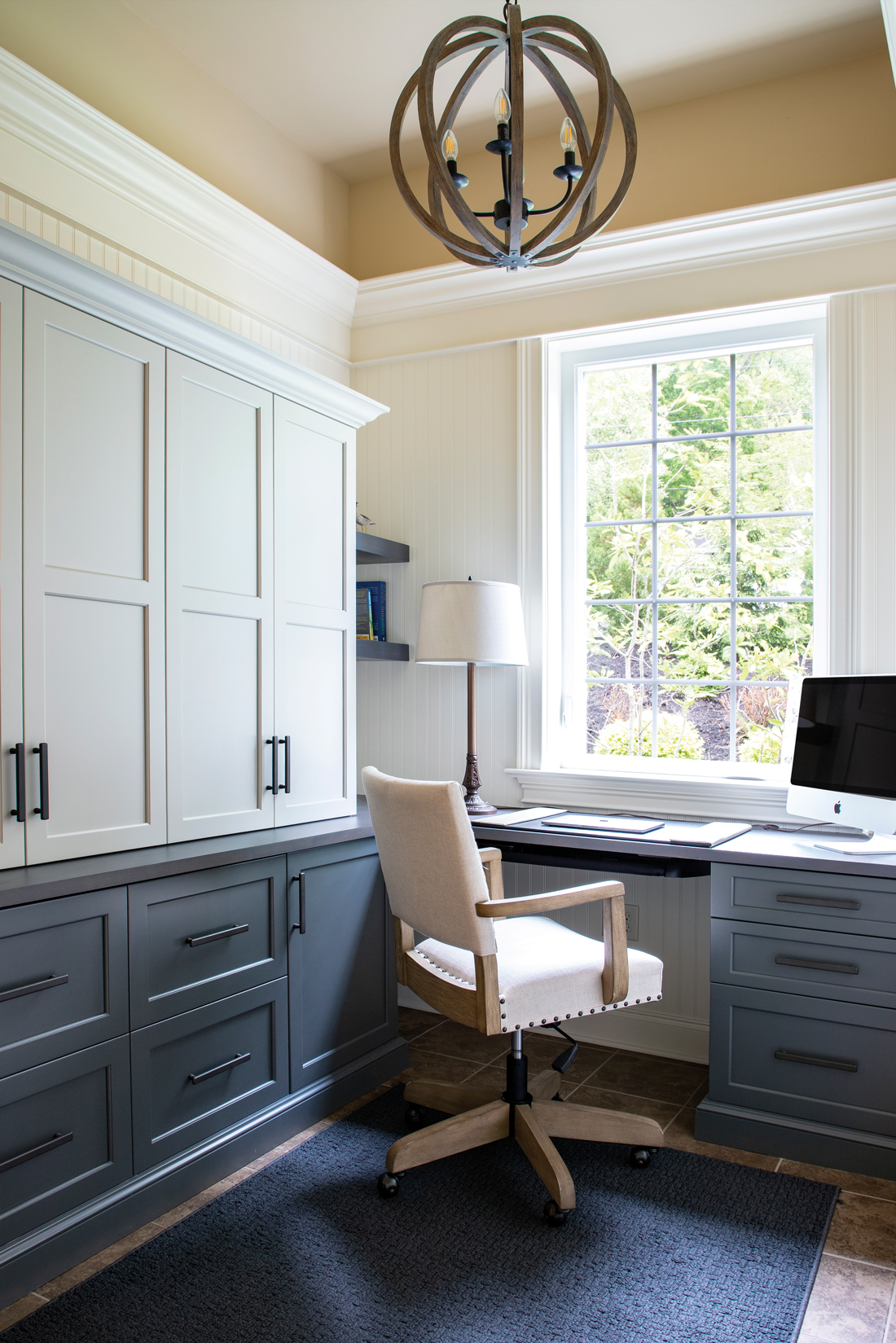 KbE addressed home office organization through the addition of built-in cabinetry in this space that was claimed from a very large laundry room.