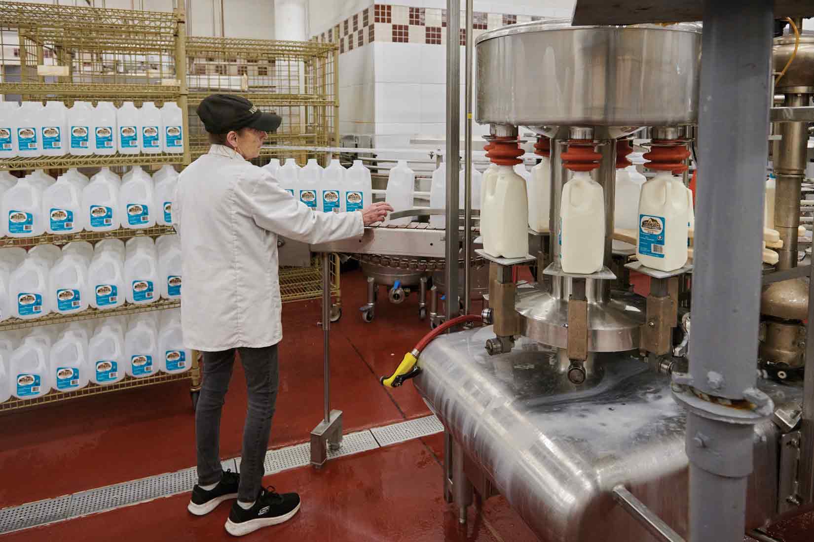 Milk bottled between whole and skim varieties can be at any defined percentage set by the dairy and its capacity. “Whatever your label says, 1%, 2% – ours is 1.5% – that’s what it needs to be,” says Kevin.
