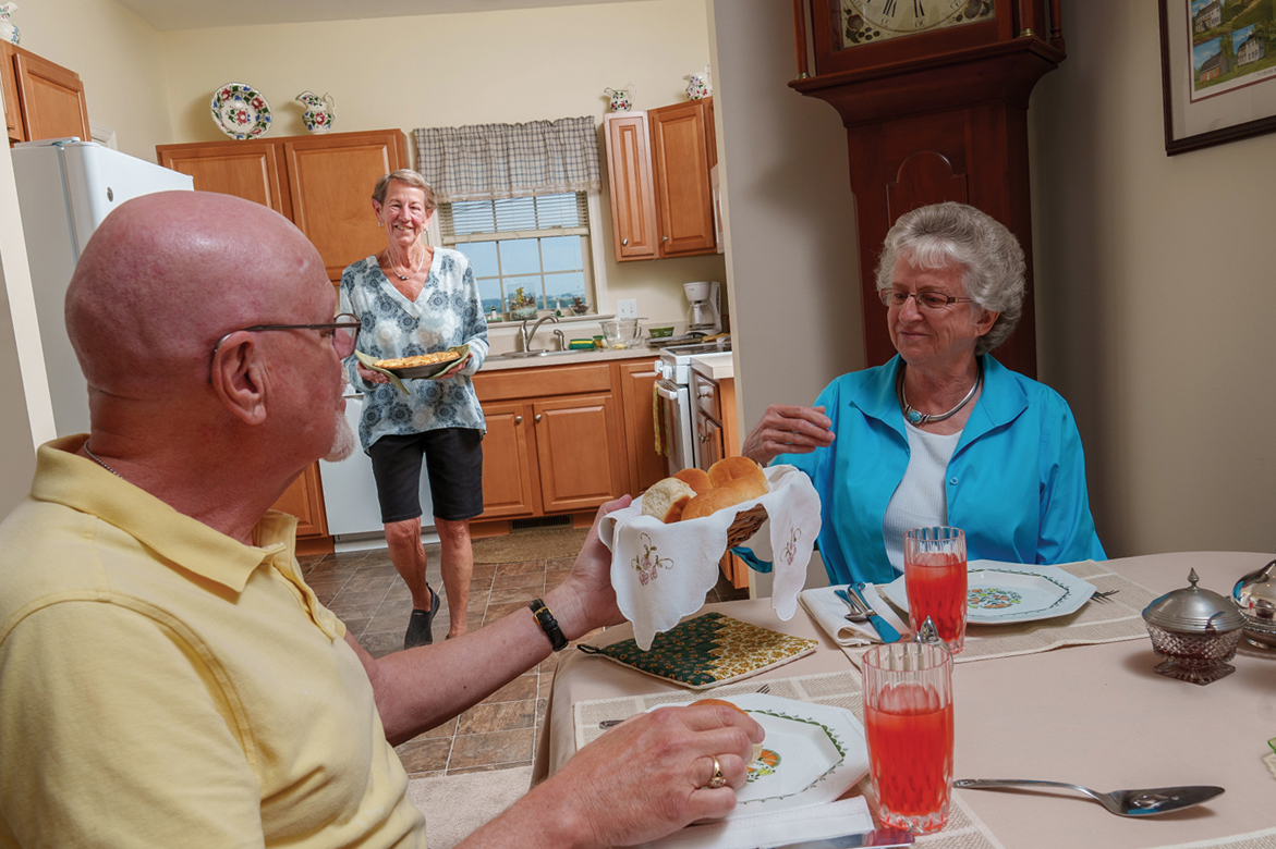 Marcia loves to cook and entertain, while Clarence, who is a history buff, is a long-time member of the Historical Society of the Cocalico Valley and a former educator at the Ephrata Cloister. Their home at United Zion is filled with mementos from their previous home, as well as their travels. As residents of United Zion, they love living in a small community where everyone is regarded as a neighbor. They were joined by their friend and neighbor, Rosene Garman, for lunch that featured one a Marcia’s favorite family recipes, Amish baked corn pie.