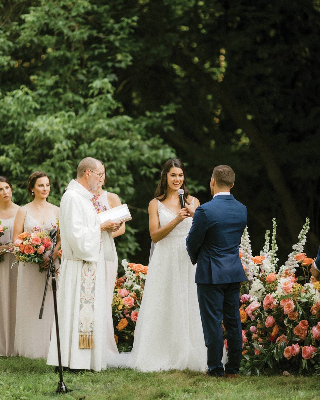 Peter Emr, a deacon in the Catholic Church, served as the officiant for the ceremony. Because of Covid, dispensations were given that allowed for Catholic ceremonies to be conducted outside of a church building.
