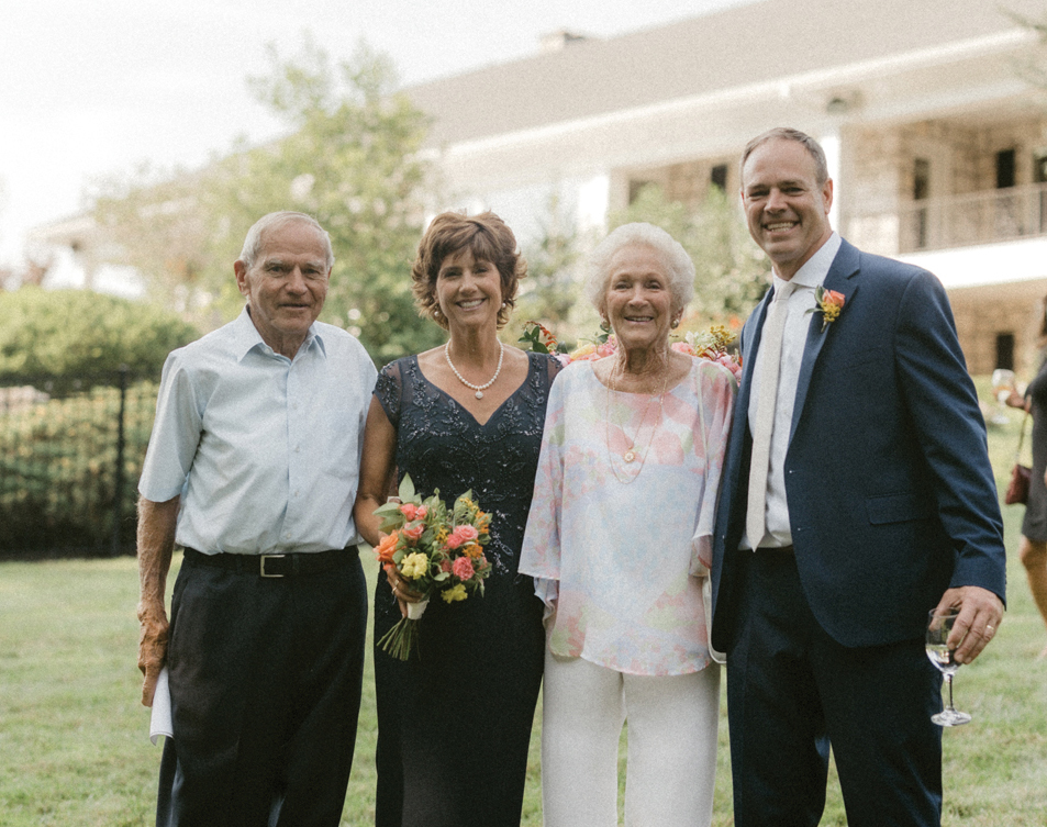 Megan and Tommy pose with their parents, Tracy and Brian FitzGerald (right) and Vincent and Joan Mandala (left).