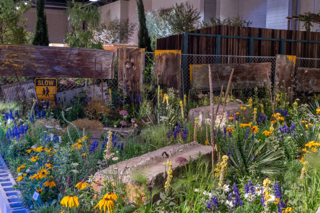 Rewilding of land is a gardening and landscape trend on the rise in 2024, especially the rewilding of urban areas. Rewilding helps to increase biodiversity and restore the natural processes of an ecosystem by reducing or ceasing human activity and reintroducing plant and animal species to take over a space naturally. This trend was well-represented at the 2024 Flower Show in Kelly Norris’ exhibit “A Beautiful Disturbance,” which featured a vacant lot overtaken by plants. Apiary Studios’ exhibit, “Right of Way” celebrated the plants and wildlife found on highway roadsides.