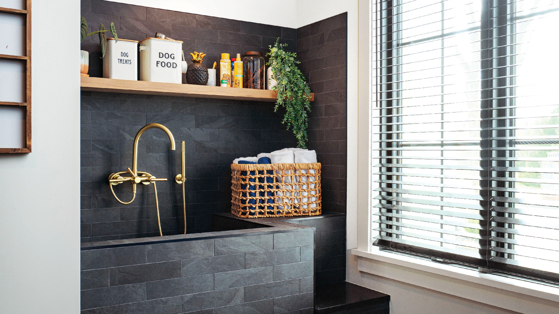 Whether you view dog-washing stations as a luxury or a necessity, they can make pet care a more positive experience, as they allow pets and their humans to enjoy the process instead of dreading it. Such a space has its perks, as it can reduce stress (it’s not fun to try to wrangle a dog into a bathtub and some dogs go into fight-or-flight mode as they are led to the bathroom); can eliminate falls (due to a slippery floor); and keep back issues at bay (no more bending over). It also eliminates the need to deep clean your bathroom once bath time is over (how did fur get on the ceiling!). Often a part of a mudroom or laundry, the stations are increasingly being outfitted with storage areas for leashes and coats, bathing needs, toys, etc. As a result, such areas are now perceived as being practical, convenient, safe and cleanlier for all family members.