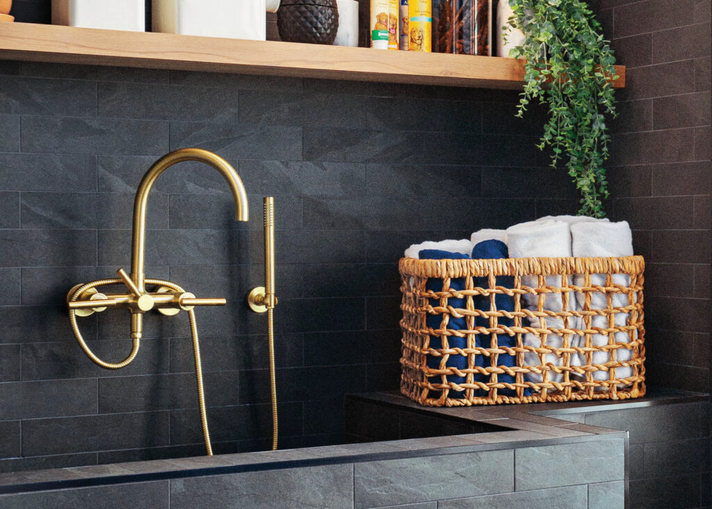EG Stoltzfus’ award-winning entry in last year’s Parade of Homes had such a space. Sleek in design (black tile with gold plumbing fixtures), it provides a quiet getaway to bathe and groom the family dog. It also was designed to help pet parents stay organized; overhead shelving provides easy access to bathing supplies. A refrigerator was added to the space for storing fresh pet food.