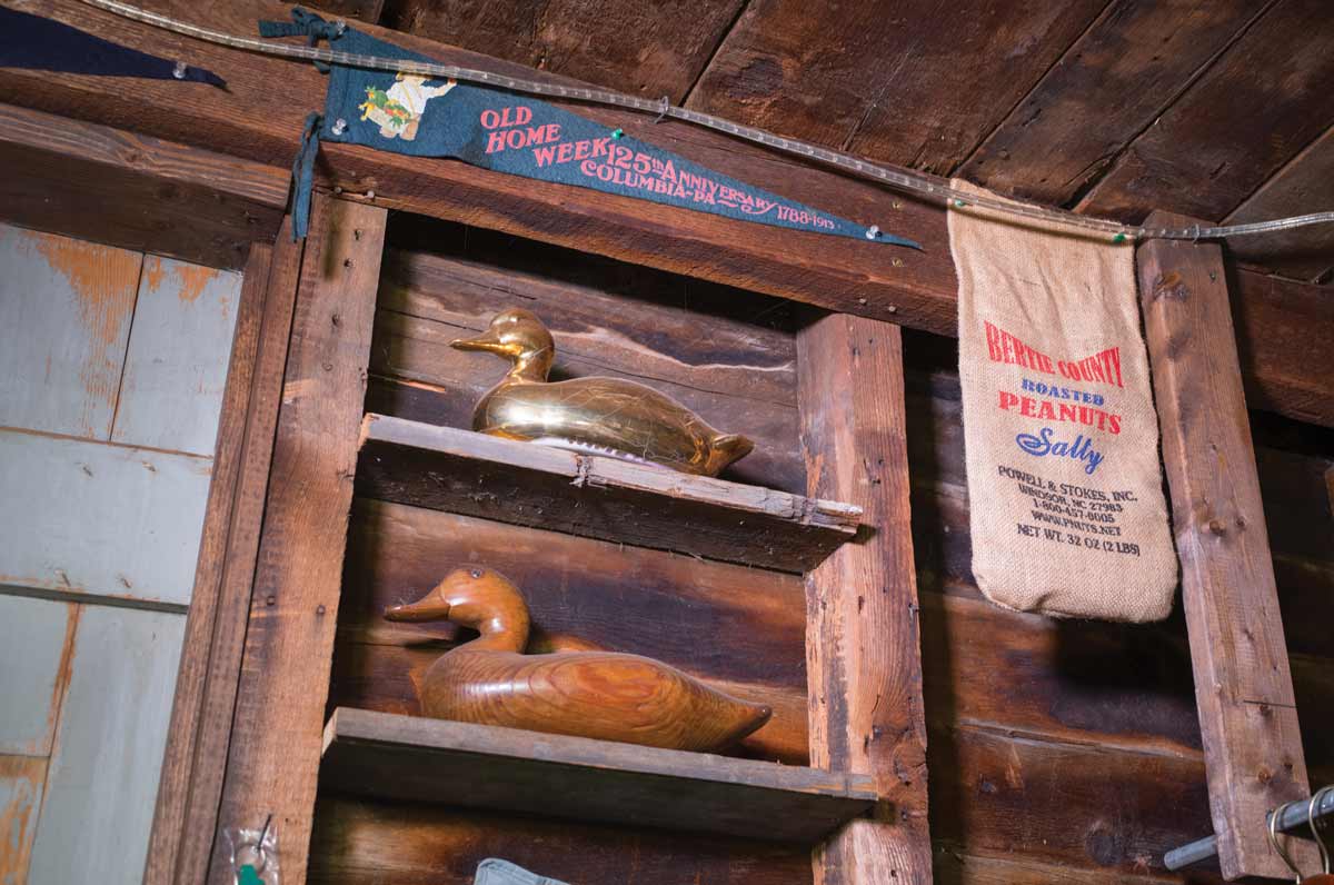 Decoys convey Dave’s love of the outdoors. The peanut bag is a relic of a stand he once operated at the Columbia Market House.