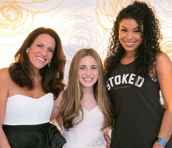 Outdoors, a stage was coming to life with sound and lighting checks. Jordin Sparks, the 2007 American Idol winner, was warming up for her high-energy concert, perfectly timed to start with a gorgeous September sunset. “My best friend and I have been talking about our bat mitzvahs since we were 6,” says Sloane, “and I always dreamed of having someone famous. My dad gave me a list of his choices, and I chose Jordin Sparks!” The singer’s last spectacular notes were punctuated by a display of fireworks, color-coordinated to the bat mitzvah’s party colors.