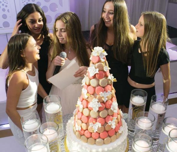 While many outside the Jewish faith may think of a bar or bat mitzvah celebration as “a wedding reception, except for one person,” it’s not that easily translated. The significant passage into adulthood is marked with a religious ceremony, which Sloane and her family experienced in Israel. The subsequent celebration with friends and family is the joyous occasion we often think of as the “bat mitzvah,” which is crafted to be a reflection of the young lady’s personality and interests.