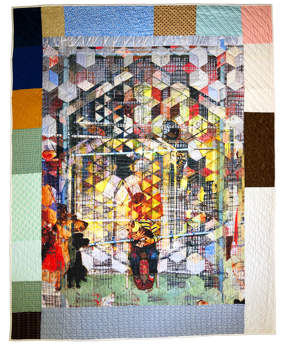 A series of hand-sewn “community quilts” featuring collaged images will be displayed in the barn gallery space on the farm property. These pieces were created in collaboration with local Amish quilters and other community members, including incarcerated and formerly incarcerated people, through a series of workshops led by Jesse. They reflect on themes of safety, justice, equality, freedom and re-entry.