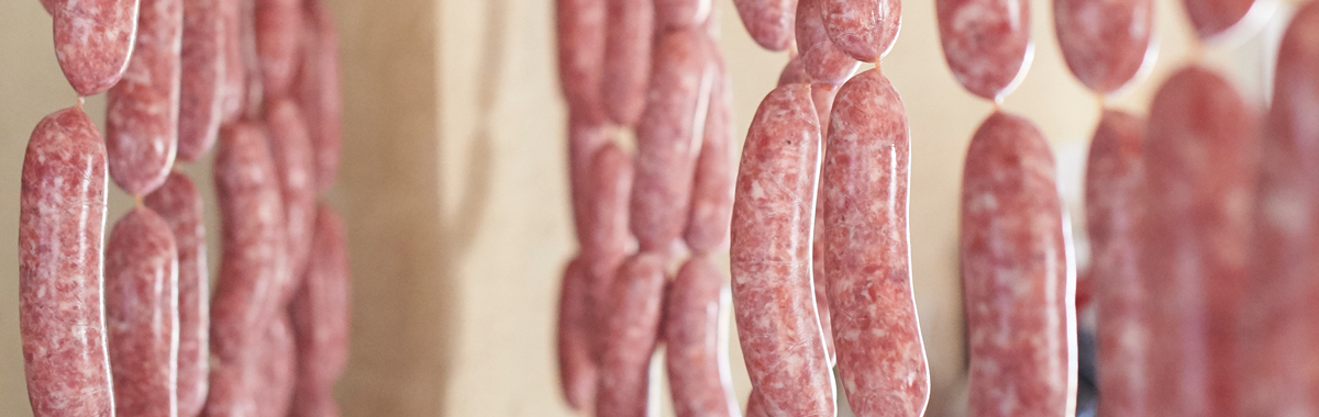 Once made, the sausage will hang for two weeks – depending on the weather – before being cooked or vacuum-packed and frozen.