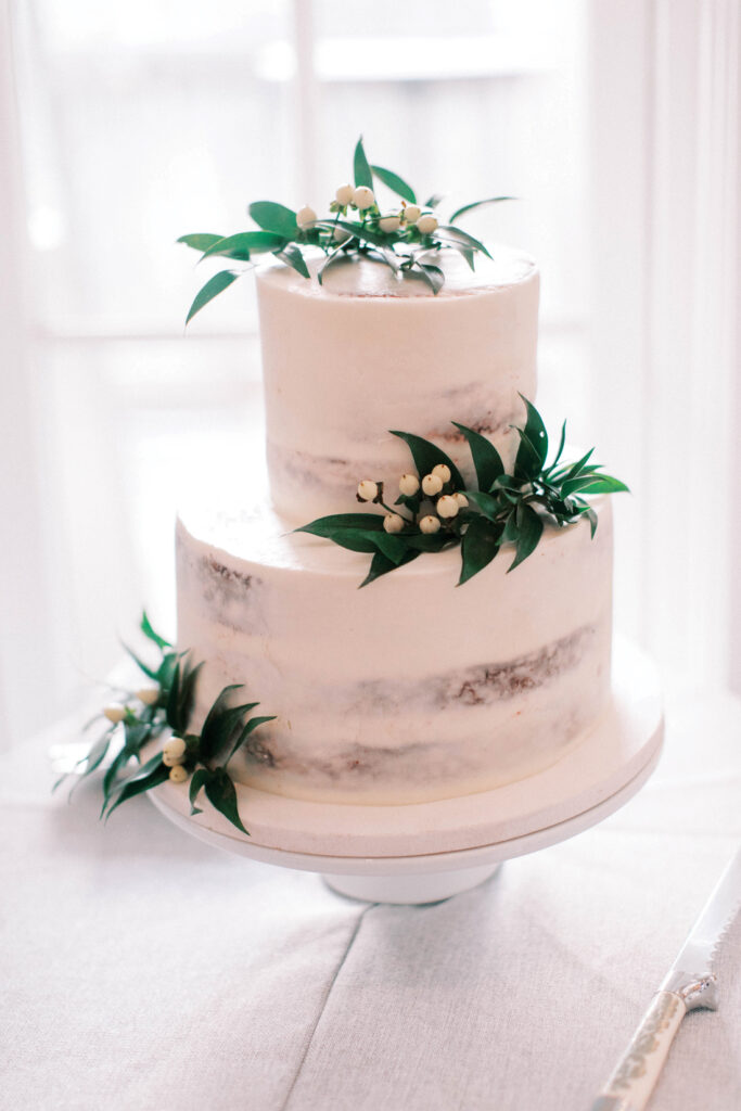 The naked cake has become a favorite of younger generations who prefer a more minimalistic approach to wedding cake design. In the case of naked cakes, frosting just “kisses” the layers of the cake, allowing the color of the cake to be visible. The beauty of a naked cake is that it can deliver a chic, sophisticated and even rustic look to the festivities. They can be embellished with flowers, greenery, seashells … the choice is yours!
