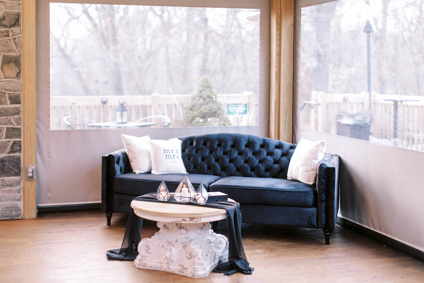One year later, on a crisp and clear December night, Hailey and L.J. stood before 100 family and friends at Riverdale Manor, a charming event venue situated along the Conestoga River in Lancaster. Their choice of venue was one of many serendipitous pieces of the wedding-planning puzzle that fell into place. “It landed in our laps,” says Hailey. “We saw Riverdale Manor online and then visited in person; we loved the location for both the ceremony and the reception.”