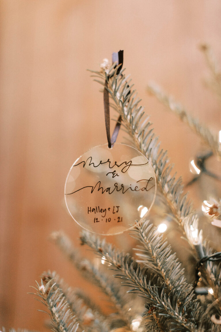 The reception was just a few steps away inside the ballroom, where a live Christmas tree was decorated with wedding favors for the guests. L.J.’s talent as a musician and songwriter took the spotlight as Hailey entered the room to his original song written for her, That Girl.