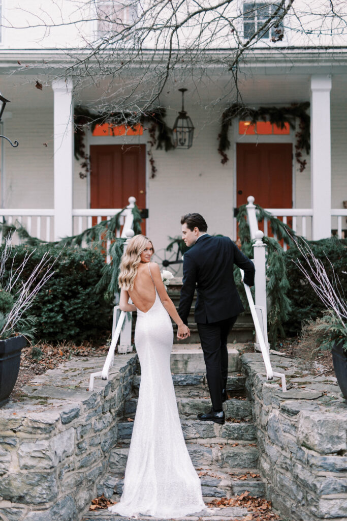 Hailey and L.J. make their way into the 19th-century farmhouse that features a bridal suite and groom’s room.