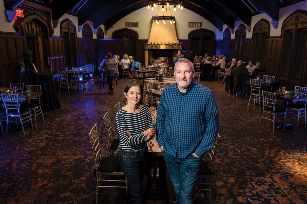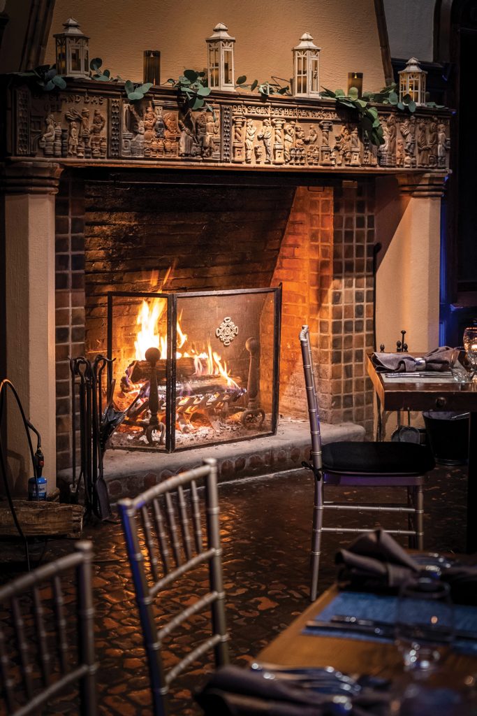 The venue’s fireplaces are covered in original Mercer tiles from Moravian Pottery and Tile Works in Doylestown.