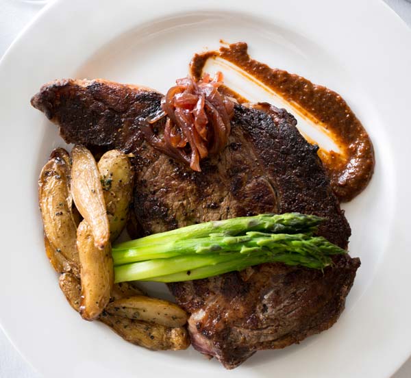 The dinner menu is augmented by daily chef’s specials. There’s also a vegetarian menu and a children’s menu. A new Twilight menu debuted in September. The three-course prix fix menu is offered from 4 to 6 p.m., Tuesday through Saturday. Entrée features include pan-seared king salmon and tenderloin filet. Sunday Brunch is served, as well.