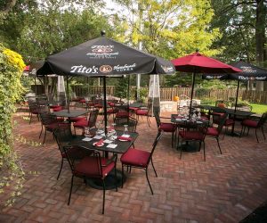 Don’t worry – the restaurant’s trademark exposed logs remain intact. Updates include a fireplace that adds to the main dining room’s ambiance. The Tavern Room (bar) sports a U-shaped 16-seat wood bar with a soapstone top. Various style tables provide additional seating. The Garden Room, which looks out onto the patio, is a light, airy space that offers great views no matter the season. The Porch Room is another light-filled space with a view of the patio. “The Porch Room is probably our most requested dining area,” Margaret says. The tree-shrouded, plant-filled patio was popular over the summer, and she hoped to keep it in operation as long as the weather cooperated. Heaters will aid in that effort.