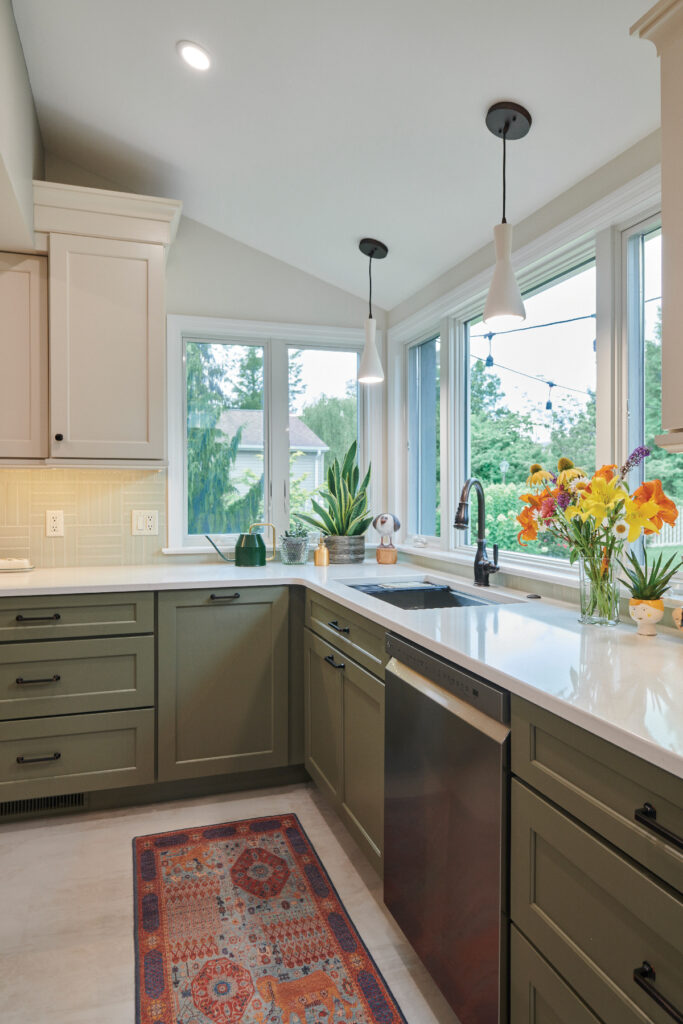 Shawna Beauchamp of Choice Home Remodeling helped her client design a kitchen geared to entertaining. She also answered the client’s desire to create a kitchen with a view of the garden-filled backyard.