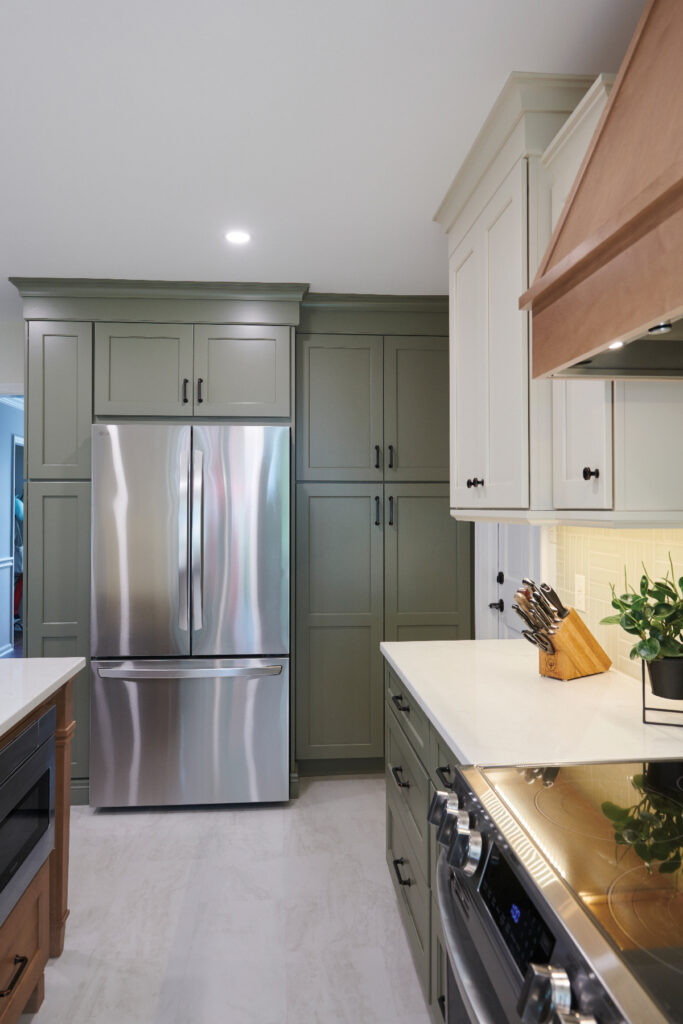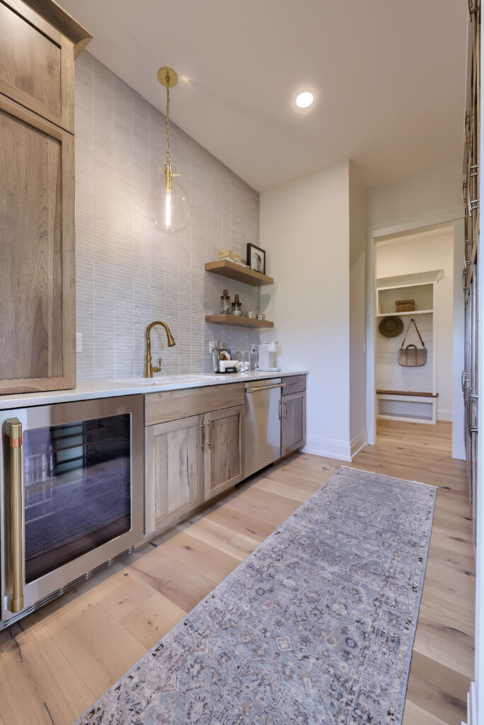 The team at Pine Hill Building Co. has put a modern spin on the traditional butler’s pantry. Referred to as a Scullery, the space provides additional prep space, storage and appliances. Best of all, it helps to keep the kitchen tidy when entertaining.