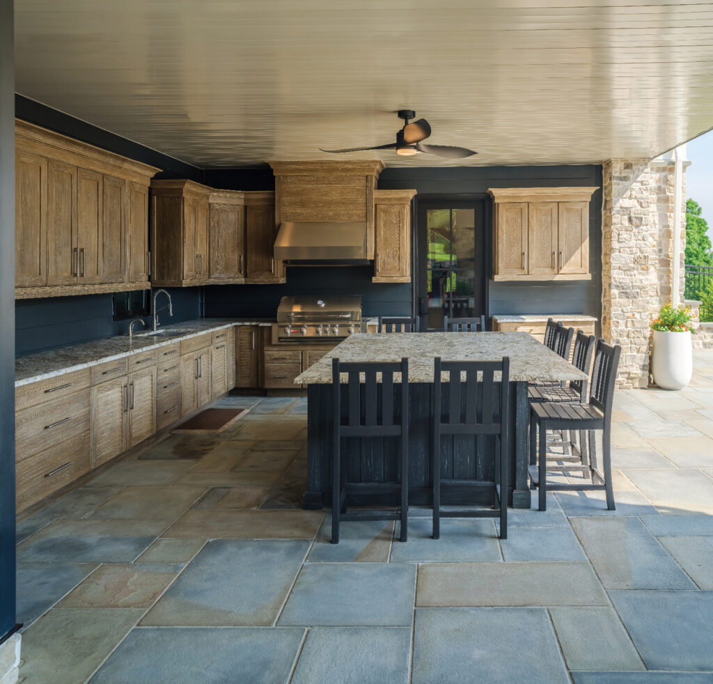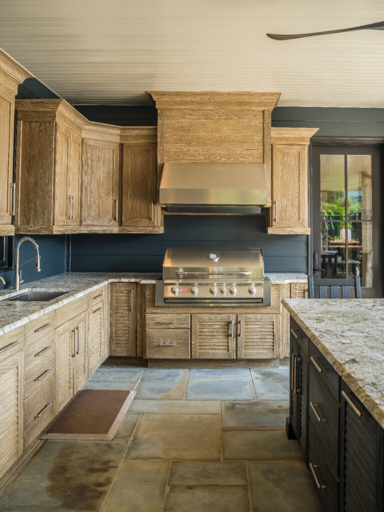 Carlene Toepfer of GR Mitchell designed two kitchens for her clients’ new home: one indoor and one outdoor.