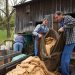 Working at the press, Barry Kubovcsak says he has been helping to make apple cider at Hay Creek for roughly 15 years. Working with him, Steve Martin has been helping for close to 20 years. “He’s the cider master, but he stands around more,” says Barry with a sly smile on his face. Pointing to the cider house, he reports, “Both of our wives are down there selling it.”