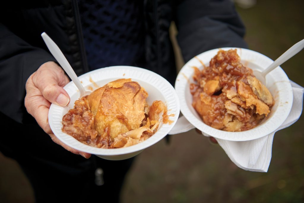 The festival also celebrates apple-based food. Schnitz Un Knepp is one of the more intriguing dishes available at the festival. If the name doesn’t give it away, this dish is Pennsylvania Dutch to its core and, at a glance, may seem to be a dessert. Stewed, dried apples comprise the schnitz, while ham and dumplings make the knepp.