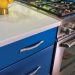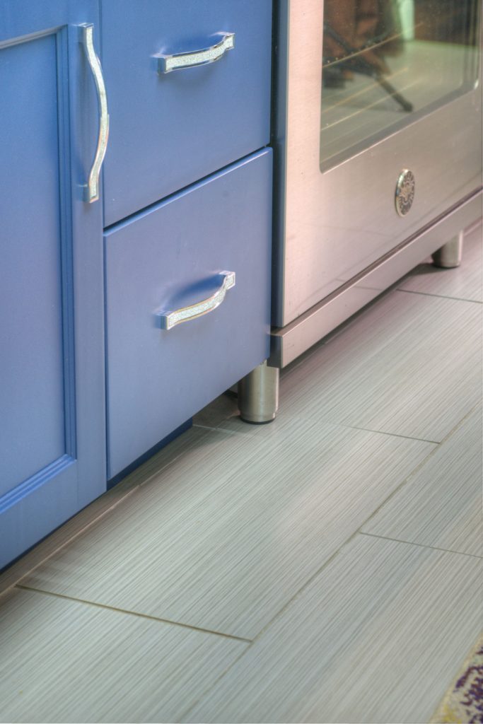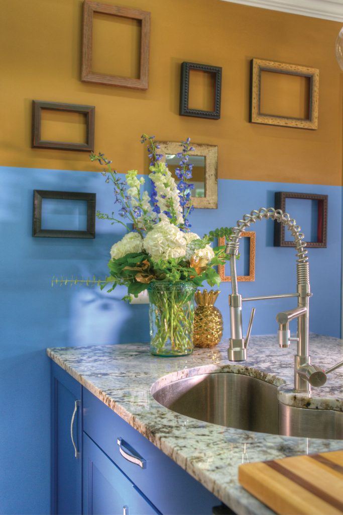The color scheme would be based on Joe’s favorite color – blue. Flat-panel upper cabinets – painted gray – would add to the modern spin.