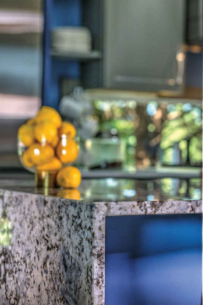 The plan always called for topping the island with granite, but Jared encouraged Joe and Darryl to consider taking it another step and follow through with waterfall edging. “He kept saying it would be a game changer, so we went with his opinion,” Joe says. “We are so glad we did – it just adds that special finishing touch.”