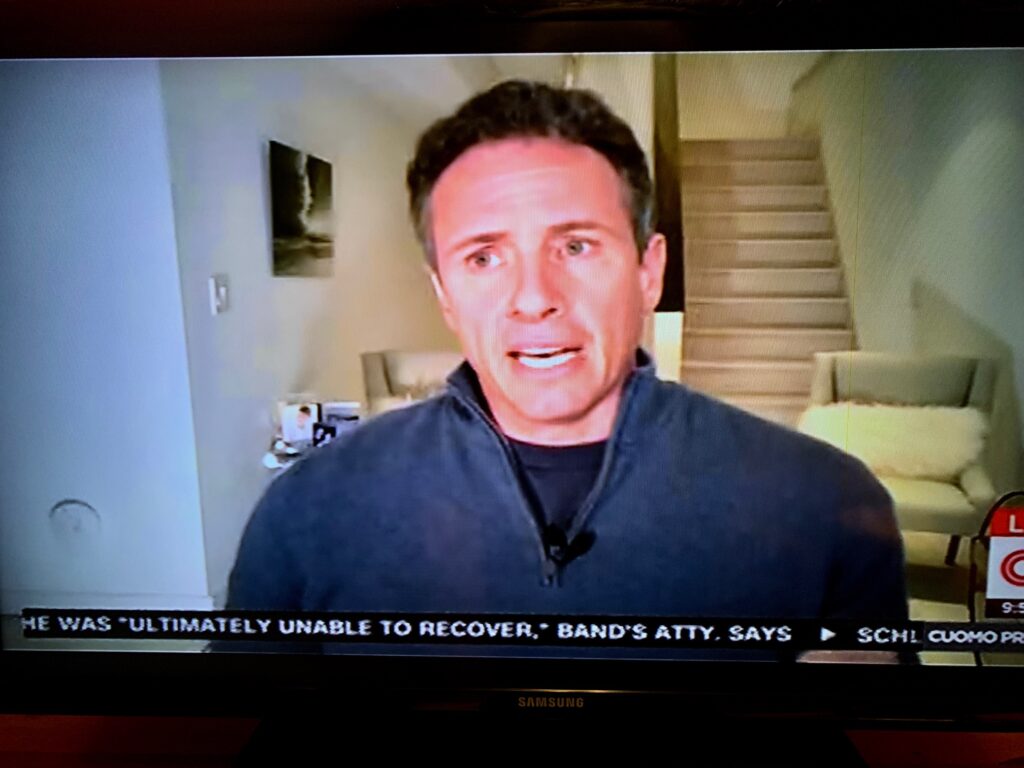 The next morning, it was disclosed Chris had been diagnosed with the virus, which made for dramatic television that night. There was Chris — now quarantined to a very beige basement with a dimly lit staircase leading to seemingly nowhere looming in the background — ever at the ready at 9 p.m. “Even the dogs don’t come down here,” he lamented. Apparently CNN made some lighting changes — the following night, the basement (including the staircase) looked less ominous.