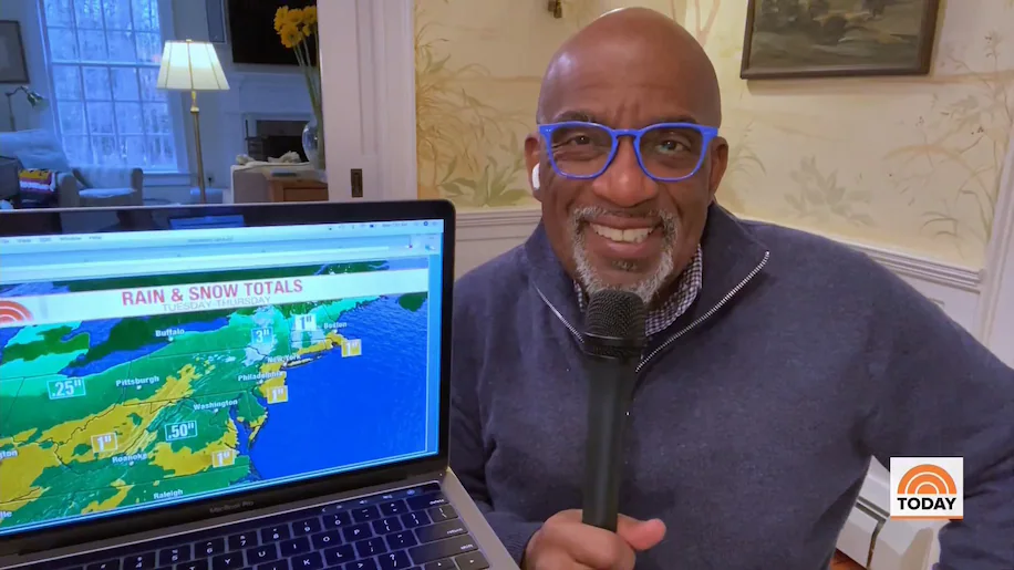 Al Roker began delivering the weather report from his kitchen but then moved to what appears to be his dining room, where you get to see a wall covered in what looks like silk wallpaper. Depending on where he is seated, you can sometimes see into a sitting room that has a really beautiful fireplace.