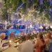 Candlelight, white twinkle lights and a moon that glowed brighter as the night progressed (thanks to spotlights) helped to transform a greenhouse into a midsummer-inspired dining room.