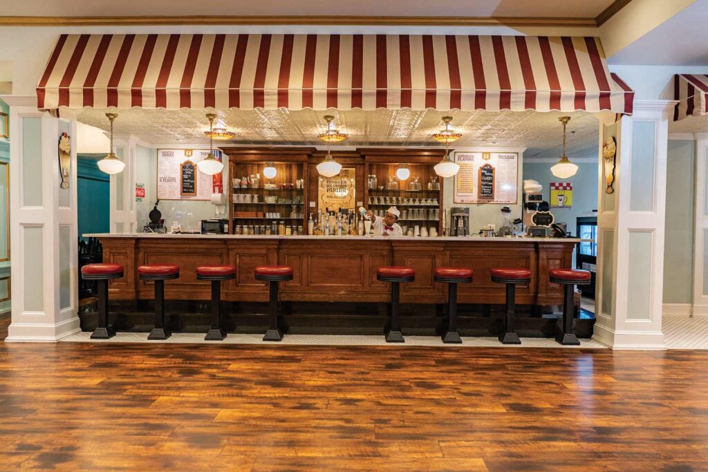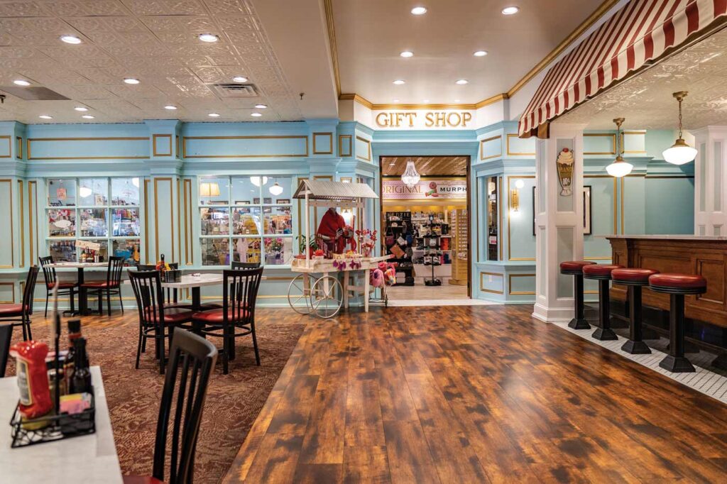 The remodeled restaurant features new floors, a pressed-tin-style ceiling, a variety of seating areas, a soda fountain, a private dining/meeting room and an expanded gift shop.