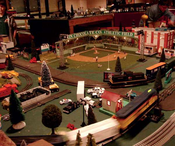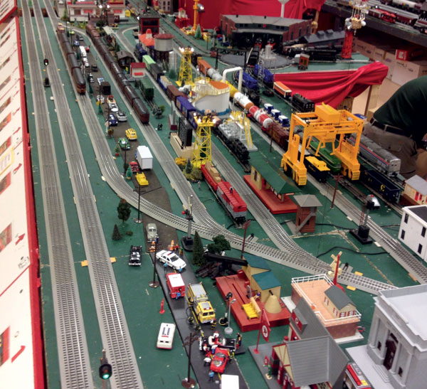 Planning for the fundraiser begins in early fall, with the construction phase getting underway in late October. Each year the Train Guys strive to make the display different from the last. There are 50 interactive buttons around the edge of the tables that operate the display.