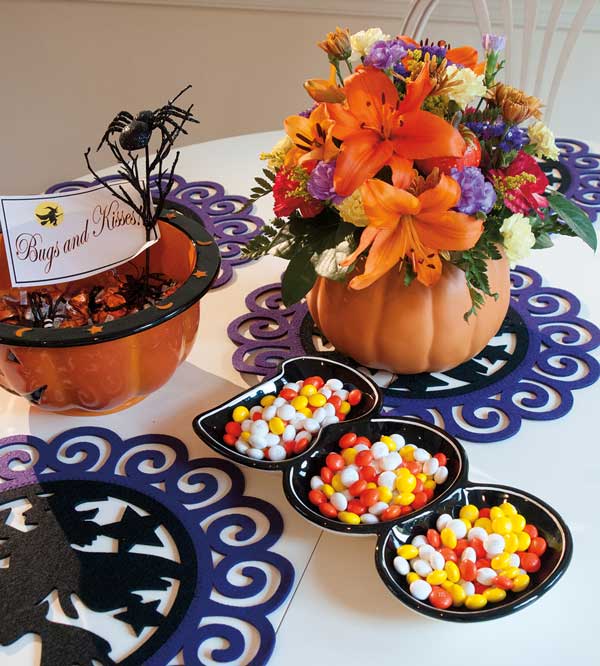 Mother and daughter then spent the next several days devising games. “Each room had a game,” Peggy points out. For example, her office was home to a game Tanya created: “Pin the Wart on the Witch,” which featured an oversized photo of Peggy in witch regalia. The game results were recorded and viewed later in the evening. Guests were also challenged to guess how much candy filled various containers, as well as the weight of a pumpkin. Another game challenged guests to view pictures of the cross-sections of candy bars and supply their names. The grand finale consisted of a Halloween trivia contest. Teams were captained by the witches of the North, South, East and West. Teams scored candy bars for each correctly answered question and the team with the most candy bars won the grand prize.
