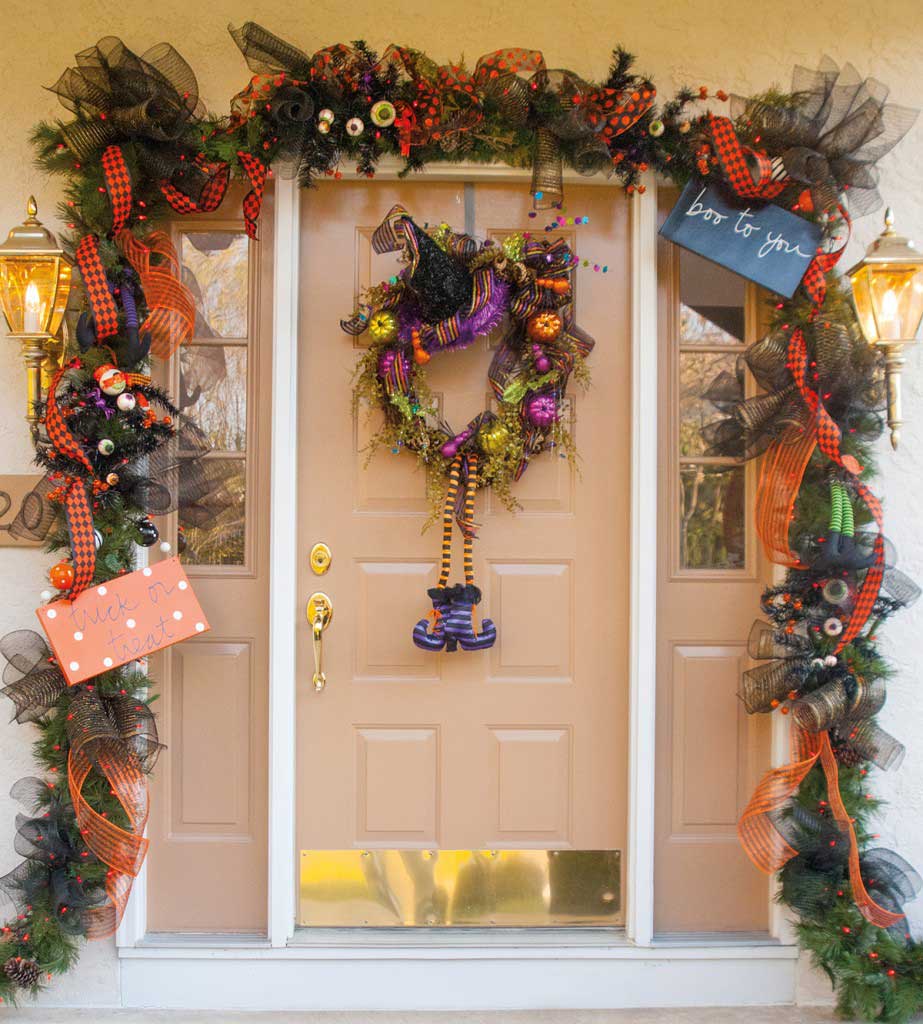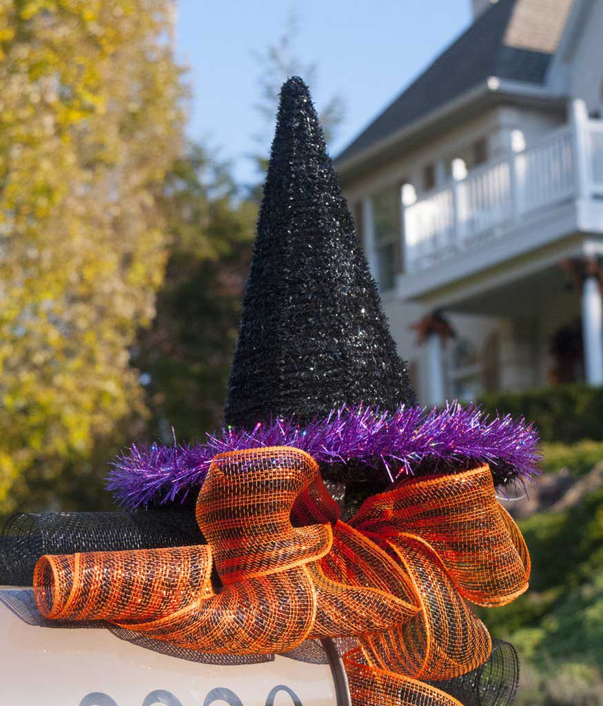 In decorating the house for the party, Peggy’s mind spun a tornado of ideas. She first pilfered her home-staging supplies and then hit the garage-sale circuit. Her path of creativity also passed through favorite haunts such as HomeGoods, the Christmas Tree Shops, A.C. Moore and Michaels. “You don’t have to spend a lot of money on decorations,” she professes, alluding to the fact that sparkle is the definitive factor. She also went online, where she perused Pinterest. “I love that site,” she proclaims. “I have almost 50 boards of my own. It’s a wonderful source of ideas.” She also studied a how-to wreath-making tutorial on YouTube that explained the intricacies of working with deco mesh, the new material that’s being used to create wreaths, swags and other decorations. “They’re not hard to make, it’s just tedious,” Peggy notes. She also found a myriad of Halloween-related art and clever sayings online, and created artwork that filled every picture frame in her house. “I made something nearly every night,” Peggy recalls. “I decorated the house over the course of a month. I encouraged my husband to go to one of his favorite places for that weekend – Las Vegas.”
