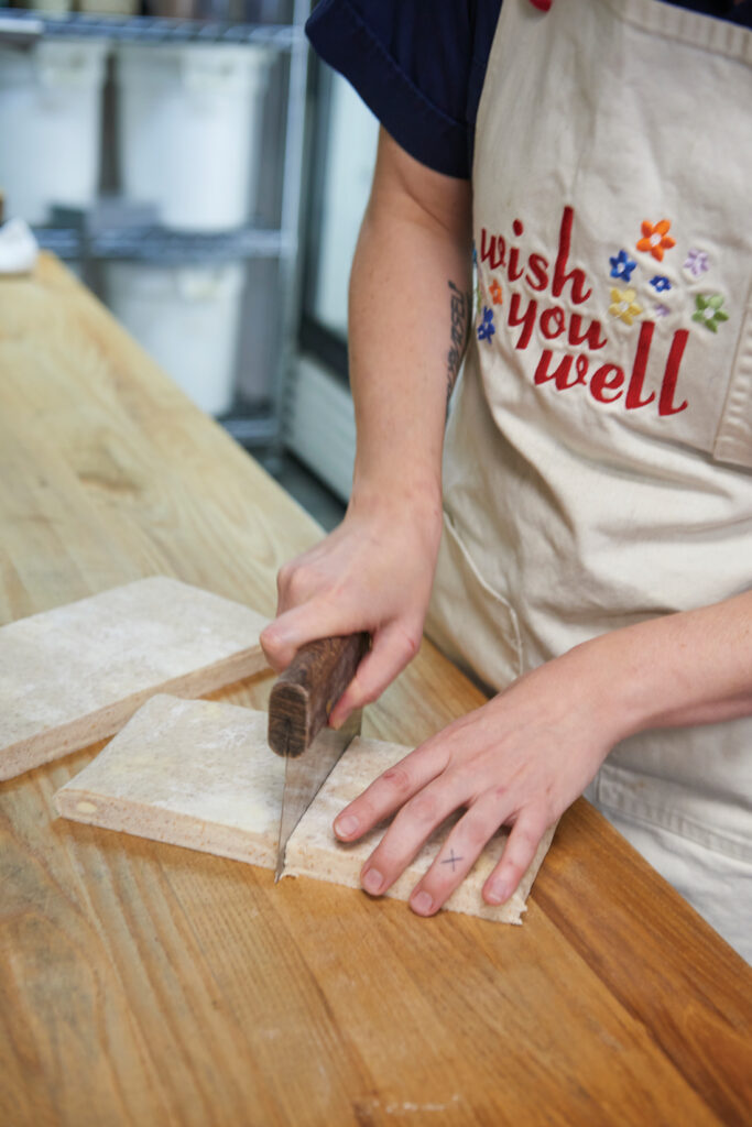 Meghan and Sebastian, have worked on both sides of the equation. “It’s not as common to be drawn to both aspects of it,” says Meghan. Pivoting between the two positions became a balancing act of managing social energy in the front of the house or the pressures related to the back-of-house. Each came with different methods of earning income, which in itself could require a role change to make ends meet. “We’ve seen both sides. We know that there’s a pay disparity between the front and back-of-house,” she remarks. “Towards the end of working for other people, I was drawn to environments where I could still bake and interact with guests. I get stimulated by those interactions.”