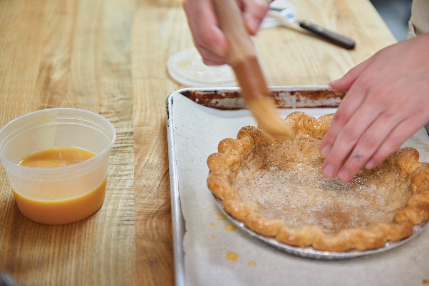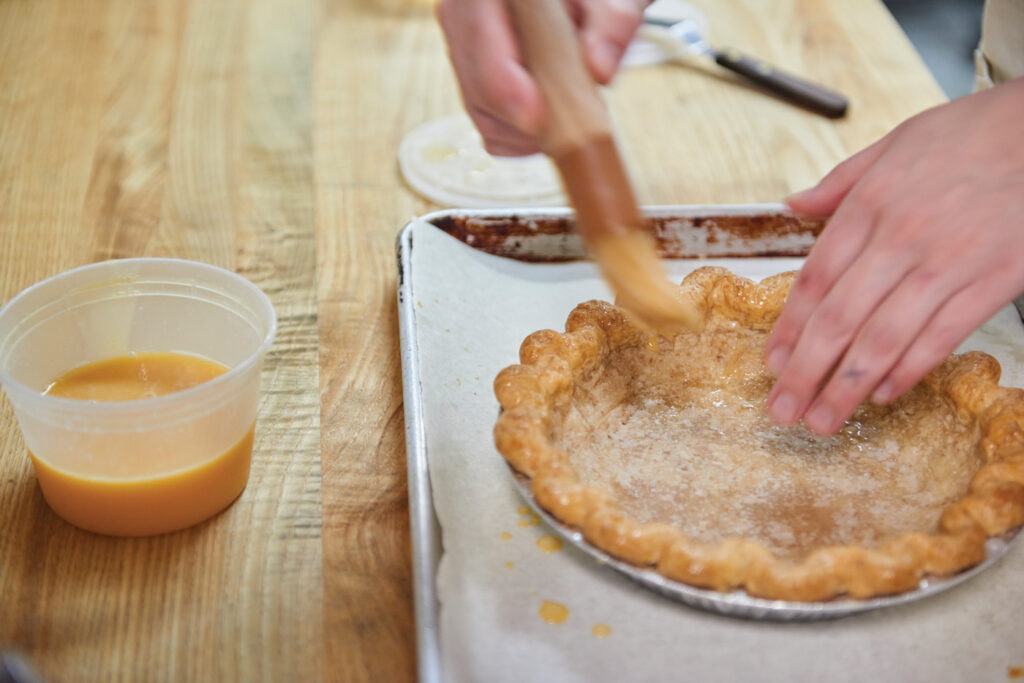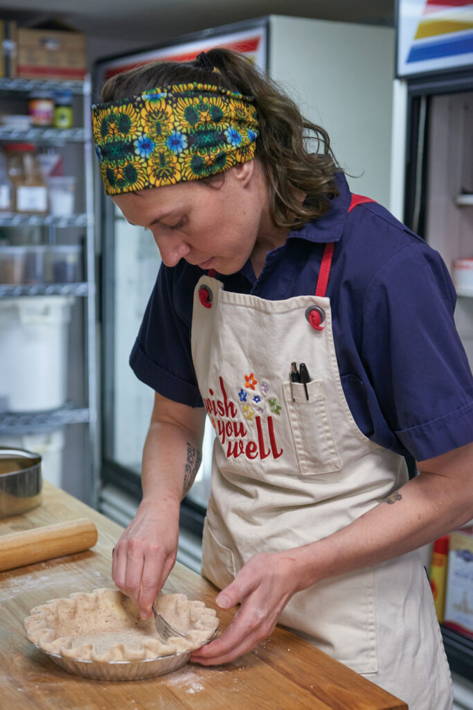 Learning to scale, Meghan ran the pastry department for Urban Outfitters Headquarters at the Navy Yard in Philadelphia, directing the production of over 600 Thanksgiving pies in 2017. Now developing recipes for Wish You Well, she describes the magic ingredients behind her beautiful and tasty creations. “I use three different types of flour, including whole wheat, to achieve the desired texture and flavor,” says Meghan. “All butter, no shortening.”
