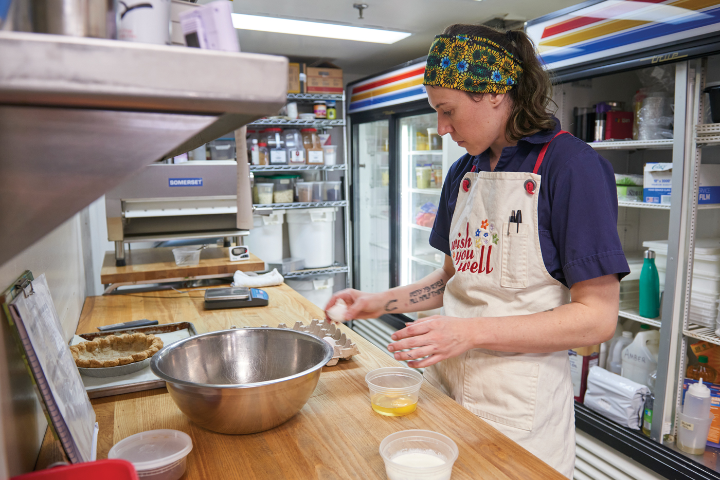 As for crowd pleasers, she reports that “customers go crazy for the Salted Brown Butter Honey pie, but we’ve sold more Pumpkin [Burnt Honey Squash] than anything else. My favorite is Pecan; it’s the first pie I ever made entirely from scratch for my family, and I’ve made it every year since 2004!”