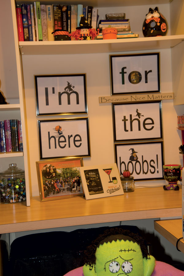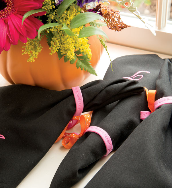 Halloween is one of Peggy’s favorite holidays, and last year she decided to incorporate breast cancer awareness into her annual women-only party by instructing her guests to add a touch of pink to their witch costumes. As with previous parties, this one followed the same format – food, drinks, décor, flowers, games – only all the elements had a pink theme. “One of the games challenged teams to come up with as many names as they could think of for boobs,” Peggy recalls. “The winning team had 23!”