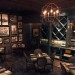 The industrial theme is balanced by elegance. The entry area is a focal point and features a gas fireplace (surrounded by a beautiful mantel and surmounted by an elegantly framed mirror) and a portrait of Henry Keiper. Earth tones – brown and gray – define the color scheme in the dining areas and bar. Dark wood abounds. Chandeliers bring sparkle to the dining areas.