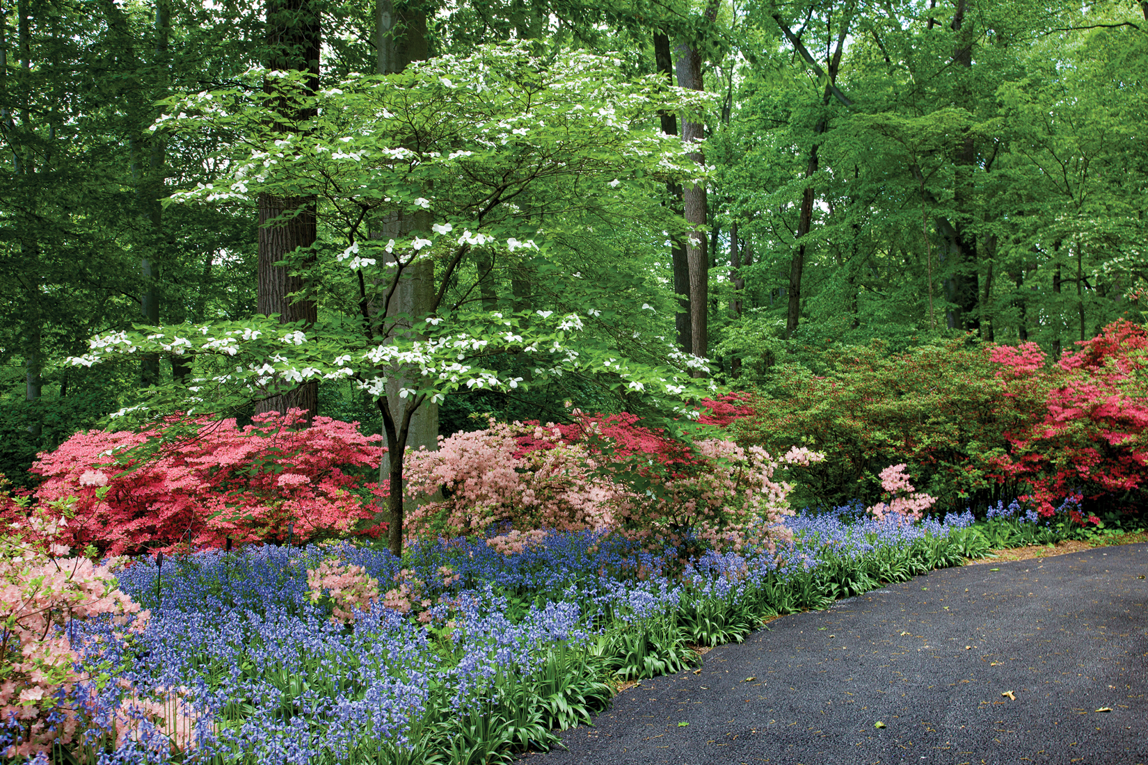 Kurume azaleas, Spanish bluebells and dogwoods greet visitors to Azalea Woods at this time of the year. Lois Mauro photo.