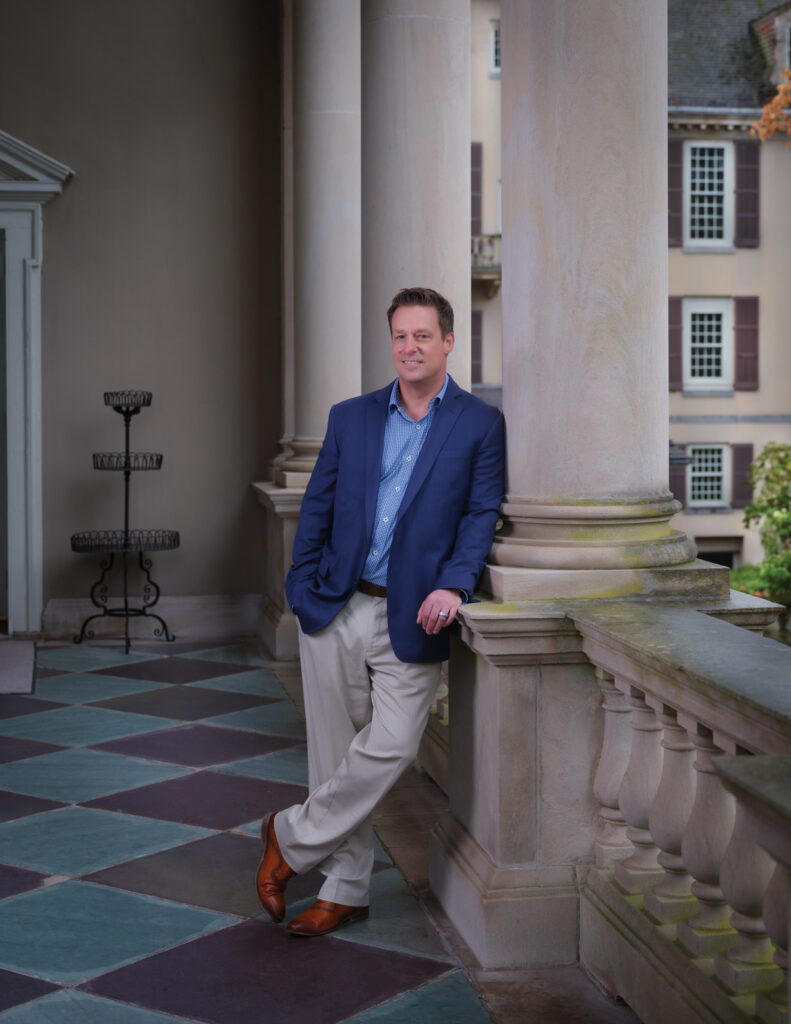 Winterthur Museum, Garden & Library’s CFO, Kirk Trasborg, is pictured on the Du Pont Dining Room Porch, which overlooks the estate’s East Terrace. Winterthur photo.
