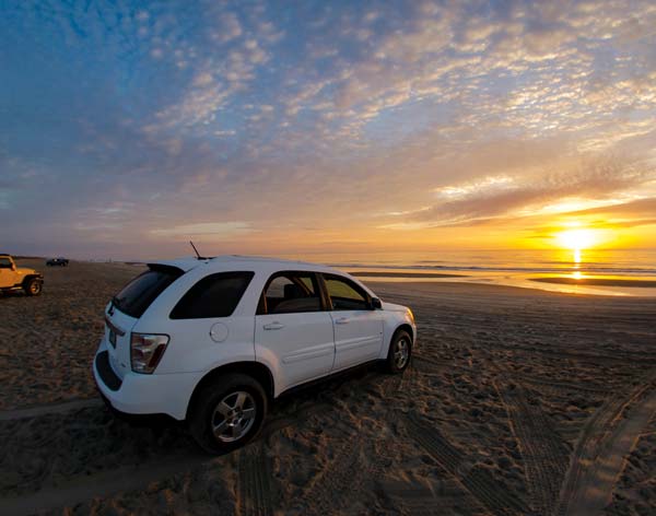 As we turn back onto NC12, there are a few more shops, a pizza place, wild horse tours and the last chance for gas. After a few more twists and turns, you begin to see the warning signs. You also begin to notice the road is filled only with pickups, hummers, jeeps and SUVs. Traffic slows before the final bend as the pavement stops and the sand begins. This is the beginning of the 11-mile stretch to the Virginia border known as the 4×4 Beach. This is the only route to the group of communities generally known as Carova, which extends to the Virginia border.