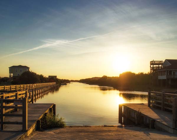 Does Kitty Hawk sound familiar? It’s home to the Wright Brothers National Memorial, which is on the site where Orville and Wilbur first took flight. Go a little farther south into Nags Head, and you’ll spot ant-sized people hiking (or hand-gliding) over the giant dunes of Jockey’s Ridge State Park. Being that the stretch between the two mainland bridges is so populated, this area also offers the most shopping, dining, entertainment and recreational activities.